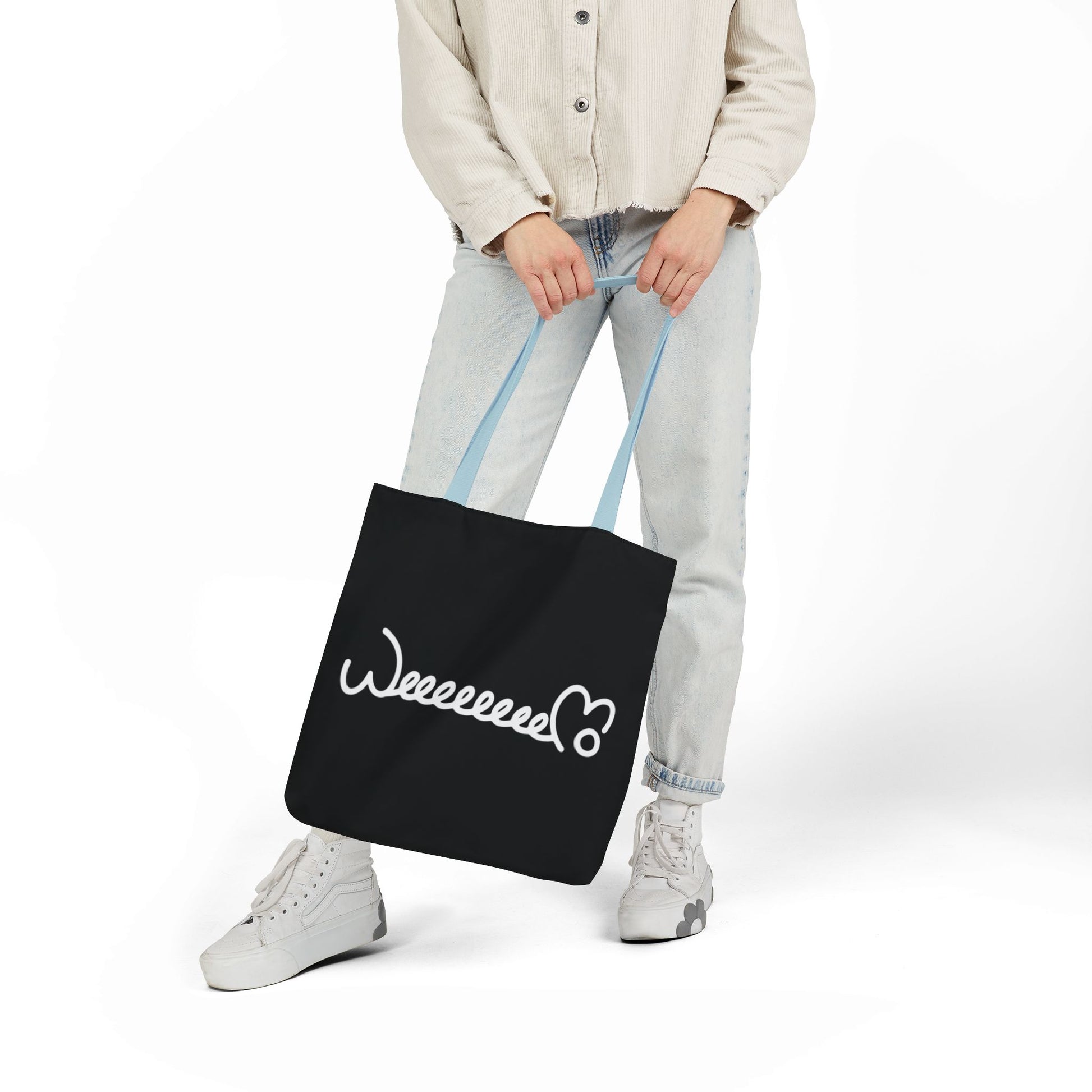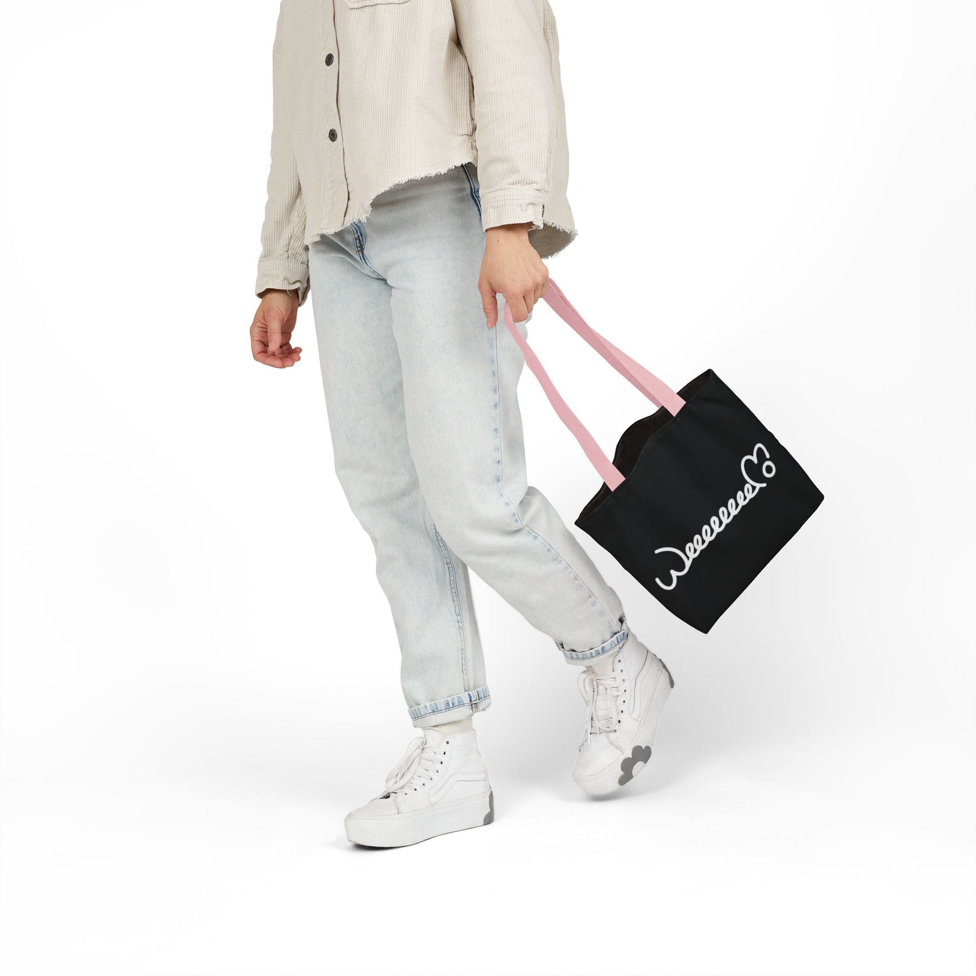 Whether you’re a cat lover, streetwear enthusiast, or someone who appreciates a functional bag with personality, this tote is your go-to choice for carrying essentials while spreading positive vibes.